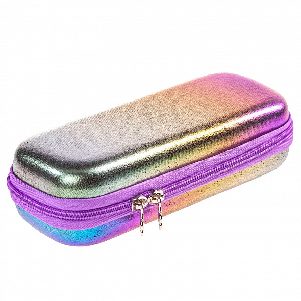 Каркасный пенал на молнии. Выполнен из современного пористого EVA материала с голографическим покрытием. Внутри вместительное отделение и сетчатый карман на молнии. Пенал возможно использовать как футляр для очков. В дополнение к пеналу можно приобрести мешок для обуви из голографического материала такого же цвета. Упаковка пластиковый бокс с европодвесом. Размер 215х90х53мм