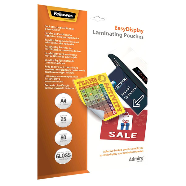 Пленка для ламинирования Fellowes EasyMove поставляется по 25 шт. в фирменной цветной упаковке.