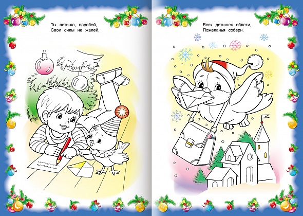 Наши издания помогут вам создать у детей новогоднее настроение и получить удовольствие от подготовки к празднику. Новогодние раскраски с чудесными стихами и картинками - увлекательное творческое занятие для детей - прекрасная идея времяпрепровождения уютного зимнего вечера.