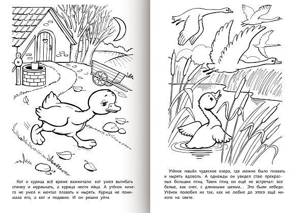 Раскраска посвящена сказке Ганса Христиана Андерсена «Гадкий утёнок». История о маленьком утёнке, который преодолел множество трудностей и превратился в прекрасного лебедя, знакома многим детям и любима ими.