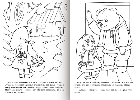 Этот товар представляет собой раскраску-книжку форматом А4 на скобе с названием «Любимые сказки. Маша и медведь». Она предназначена для раскрашивания и содержит иллюстрации к сказке «Маша и медведь».