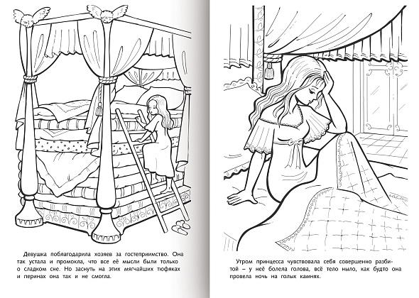 Эта красочная книжка-раскраска предназначена для детей и содержит в себе увлекательные истории из сказки «Принцесса на горошине».