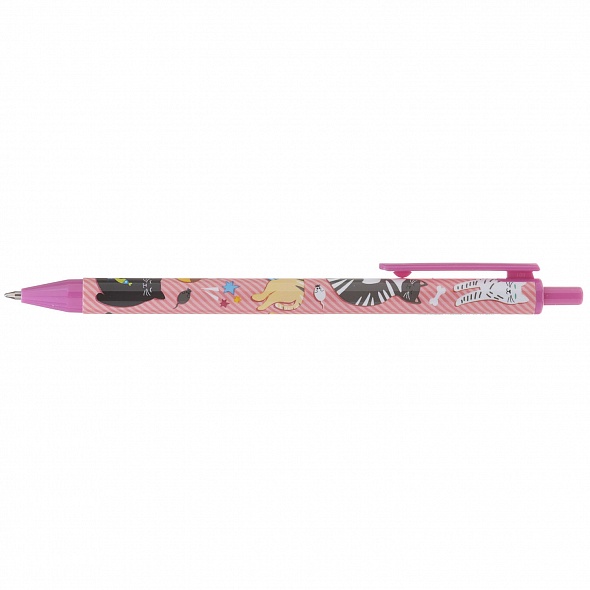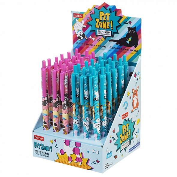 Шариковые автоматические ручки с эмоциональными современными патернами. Хорошая эргономика. Специальный пишущий узел и чернила на масляной основе обеспечивают долгое, легкое и стабильное письмо. Диаметр пишущего узла - 0,7 мм. Цвет чернил: синий. Упаковка - картонный дисплей 36 шт.