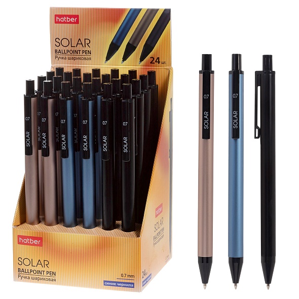 Надежная металлическая ручка на каждый день. Современный дизайн в стиле "casual". Чернила на масляной основе обеспечивают легкое, долгое и стабильное письмо. Цвет чернил - синий. Диаметр пишущего узла: 0,7 мм. Упаковка: картонный дисплей 24 шт.