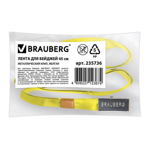 Лента BRAUBERG подойдет для любого бейджа. Надежный тип крепления.