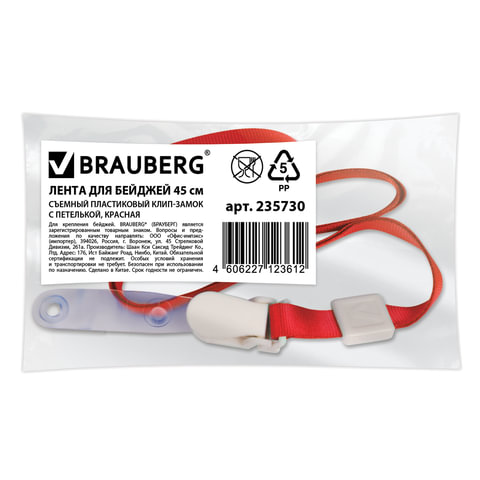 Лента BRAUBERG подойдет для любого бейджа. Надежный тип крепления.