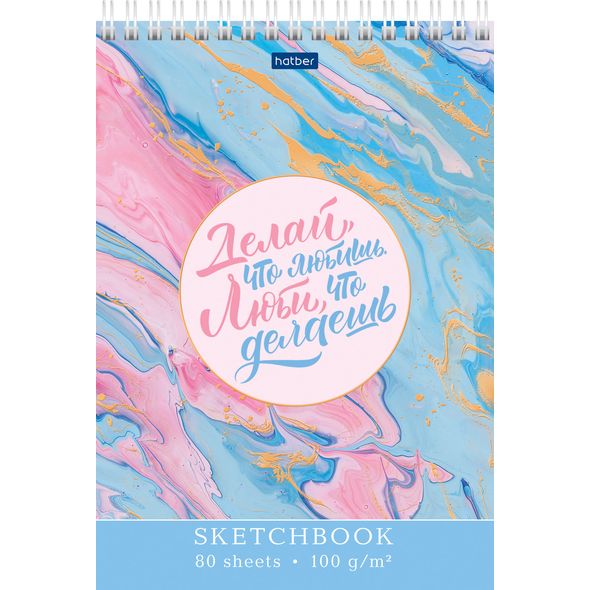 Блокнот SketchBook А5 формата. Количество листов: 80. Обложка: мелованный картон, твердая подложка. Внутренний блок: офсет 100 гр., без линовки.Скрепление: гребень. Блокнот SketchBook прекрасно подойдет как для зарисовок, так и для записей. Он обладает всеми необходимыми характеристиками, чтобы стать полноценным помощником для художников на каждый день. Плотная бумага отлично подходит для любых сухих техник, включая рисунок углем, графитом, цветными карандашами, ручками и тушью, пастелью. Скрепление 'гребень' дает возможность раскрывать скетчбук на 360 градусов, а твердая подложка позволяет делать зарисовки на весу. С помощью скетчбука можно быстро и легко зафиксировать свои идеи и развить творческие навыки.Блокноты SketchBook ТМ Hatber российского производства отпечатаны на современном высокотехнологичном оборудовании и соответствуют стандартам качества.