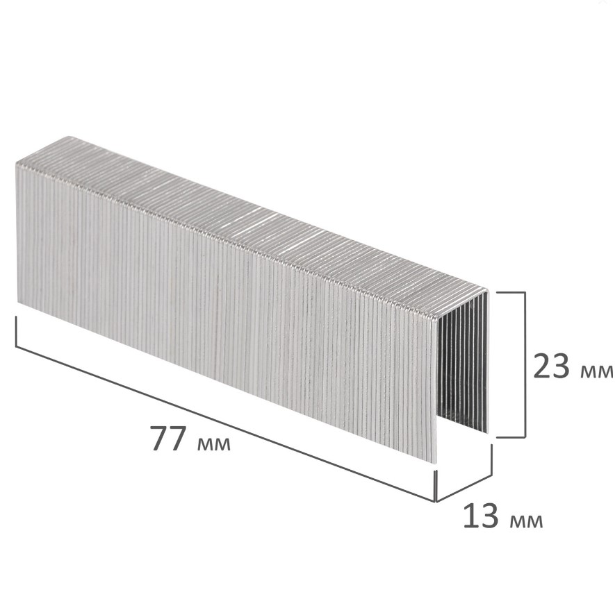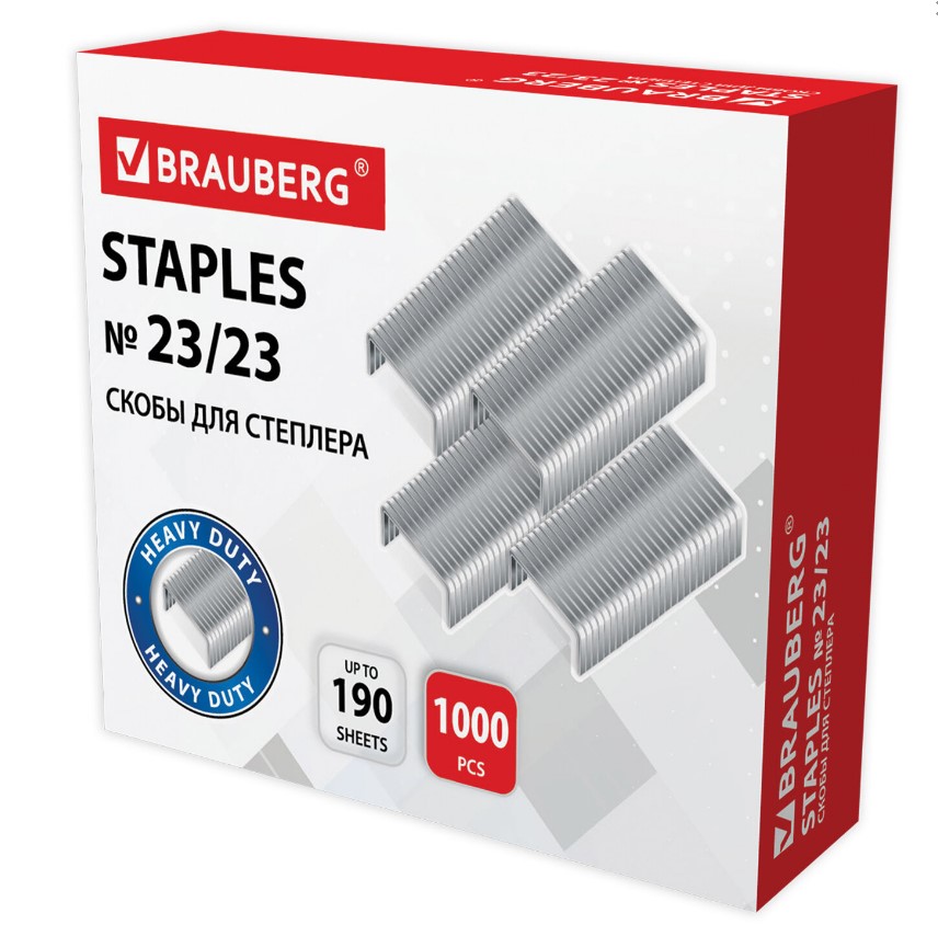 Заточенные сверхпрочные стальные скобы серебристого цвета для степлера BRAUBERG размером № 23/23.