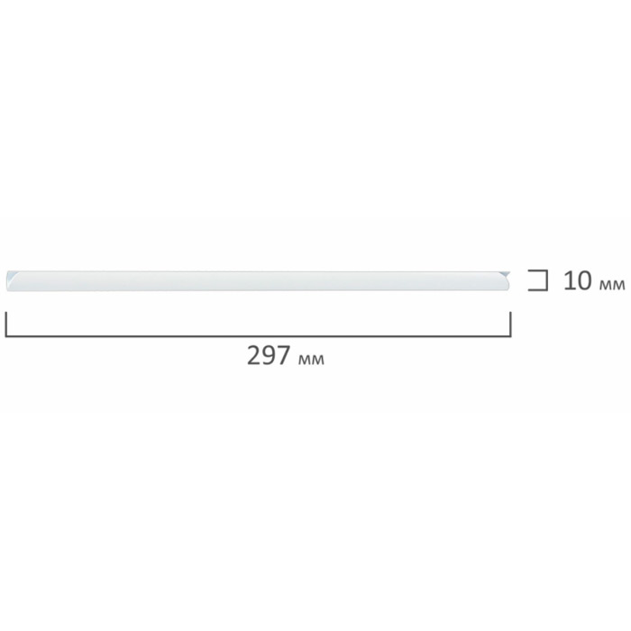 Плотный пластиковый корешок белого цвета надежно скрепляет бумаги. Вмещает до 50 листов. Длина механизма составляет 297 мм, а ширина 10 мм. В комплект входит 10 штук.