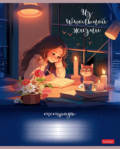 Серия тетрадей А5 формата, 40 листов. Обложка- мелованный картон. Внутренний блок- офсетная бумага, плотность 65 гр., клетка, красные поля. Белизна- 100%. Вид крепления- скоба. Упаковка- индивидуальная.