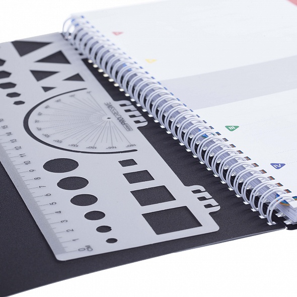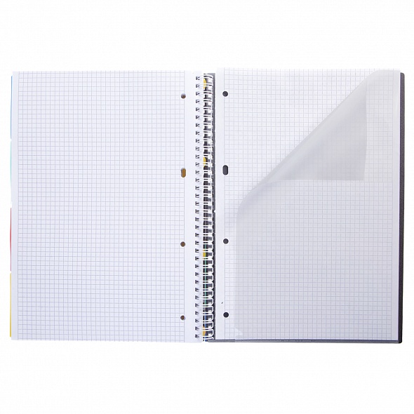 Тетрадь А4 формата 96 листов.Обложка: пластик, толщина 0,6 мм, фигурная высечка.Внутренний блок: офсет 60 гр., клетка, 4 цветных разделителя, с линейкой, с карманом.Скрепление: гребень.Мультифункциональное изделие, которое по достоинству оценят студенты и люди, работающие в режиме многозадачности. Тетрадь предназначена для записей, подойдет для старшей школы, вуза, дома и офиса. Пластиковая обложка с металлическим эффектом дополнена фигурной вырубкой на лицевой стороне и пластиковым карманом на оборотной. Тетрадь имеет 4 полупрозрачных цветных пластиковых разделителя с 'ушками', цепляющихся к гребню на замках. По такому же принципу к тетради крепится прозрачная пластиковая линейка. Еще одна полезная вкладка в изделии-полноцветный титульный лист с возможностью персонализации. Скрепление 'гребень' позволяет раскрывать тетрадь на 360 градусов. Тетради ТМ Hatber российского производства отпечатаны на современном высокотехнологичном оборудовании и соответствуют стандартам качества.