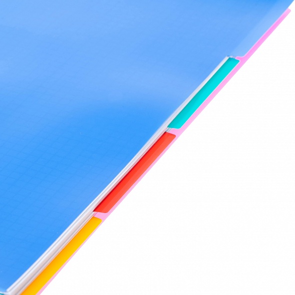 Тетрадь А4 формата 96 листов.Обложка: пластик, толщина 0,6 мм.Внутренний блок: офсет 60 гр., клетка, 4 цветных разделителя, с линейкой.Скрепление: гребень.Тетрадь предназначена для записей, подойдет для старшей школы, вуза, дома и офиса. Стильная рельефная неоновая пластиковая обложка имеет скругленные уголки. Тетрадь имеет 4 полупрозрачных цветных пластиковых разделителя с 'ушками', цепляющихся к гребню на замках. По такому же принципу к тетради крепится прозрачная пластиковая линейка, которая параллельно может служить и закладкой. Скрепление 'гребень' позволяет раскрывать тетрадь на 360 градусов. Тетради ТМ Hatber российского производства отпечатаны на современном высокотехнологичном оборудовании и соответствуют стандартам качества.
