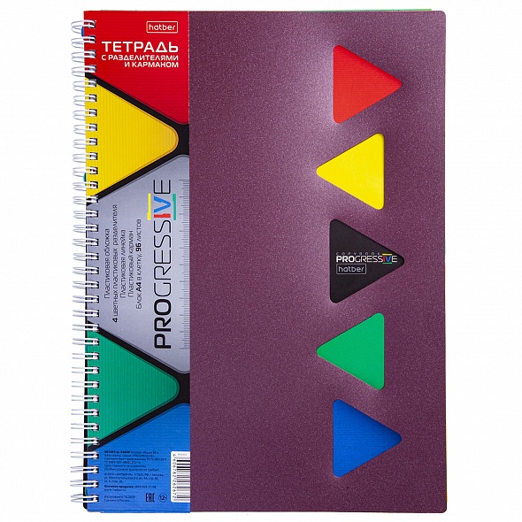 Тетрадь А4 формата 96 листов.Обложка: пластик, толщина 0,6 мм, фигурная высечка.Внутренний блок: офсет 60 гр., клетка, 4 цветных разделителя, с линейкой, с карманом.Скрепление: гребень.Мультифункциональное изделие, которое по достоинству оценят студенты и люди, работающие в режиме многозадачности. Тетрадь предназначена для записей, подойдет для старшей школы, вуза, дома и офиса. Пластиковая обложка с металлическим эффектом дополнена фигурной вырубкой на лицевой стороне и пластиковым карманом на оборотной. Тетрадь имеет 4 полупрозрачных цветных пластиковых разделителя с 'ушками', цепляющихся к гребню на замках. По такому же принципу к тетради крепится прозрачная пластиковая линейка. Еще одна полезная вкладка в изделии-полноцветный титульный лист с возможностью персонализации. Скрепление 'гребень' позволяет раскрывать тетрадь на 360 градусов. Тетради ТМ Hatber российского производства отпечатаны на современном высокотехнологичном оборудовании и соответствуют стандартам качества.