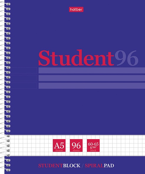 Тетрадь А5 формата 96 листов. Обложка: мелованный картон. Дополнена спецэффектом в виде матовой ламинации и тиснения. Внутренний блок: офсет 60 гр., клетка, микроперфорация на отрыв. Скрепление: спираль. Тетрадь предназначена для записей, подойдет для старшей школы, вуза, дома и офиса. Скрепление 'спираль' позволяет раскрывать тетрадь на 360 градусов. Тетради ТМ Hatber российского производства отпечатаны на современном высокотехнологичном оборудовании и соответствуют стандартам качества.