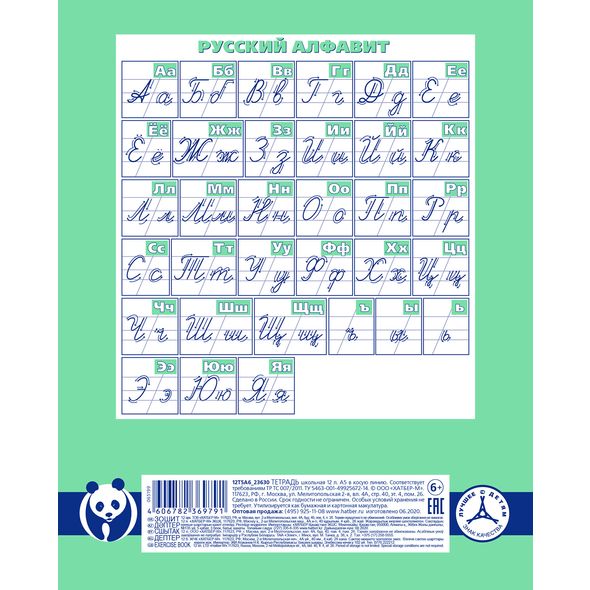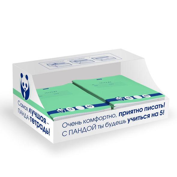 Тетрадь А5 формата 12 листов.Обложка: мелованный картон. Внутренний блок: офсет 80 гр., косая линия, красные поля.Скрепление: скоба. Зеленые тетради классического дизайна, дополненные милым изображением панды, не оставят равнодушным ни одного школьника. Блок повышенной плотности и гладкости идеально подходит для всех видов пишущих принадлежностей, включая гелевые, капиллярные и перьевые ручки: написанное на одной стороне не просвечивает на другой. Внешний вид тетрадей надолго сохранит свою привлекательность за счет скругленных уголков. Внутренний блок с четко прорисованными полями и линовкой соответствуют высокому качеству полиграфии. Тетради упакованы в картонную транспортную коробку. На ней имеется перфорация для частичного отрыва верхней крышки, за счет которой коробка без особых усилий превращается в удобный шоу-бокс для выкладки тетрадей на полках магазинов.Тетради ТМ Hatber российского производства отпечатаны на современном высокотехнологичном оборудовании и соответствуют стандартам качества.