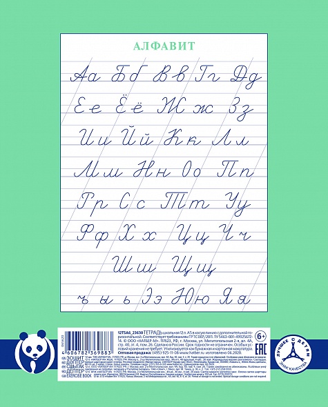 Тетрадь А5 формата 12 листов.Обложка: мелованный картон. Внутренний блок: офсет 80 гр., косая линия с доп. горизонтом, красные поля.Скрепление: скоба. Зеленые тетради классического дизайна, дополненные милым изображением панды, не оставят равнодушным ни одного школьника. Блок повышенной плотности и гладкости идеально подходит для всех видов пишущих принадлежностей, включая гелевые, капиллярные и перьевые ручки: написанное на одной стороне не просвечивает на другой. Внутренний блок с четко прорисованными полями и линовкой соответствуют высокому качеству полиграфии. Тетради упакованы в картонную транспортную коробку. На ней имеется перфорация для частичного отрыва верхней крышки, за счет которой коробка без особых усилий превращается в удобный шоу-бокс для выкладки тетрадей на полках магазинов.Тетради ТМ Hatber российского производства отпечатаны на современном высокотехнологичном оборудовании и соответствуют стандартам качества.