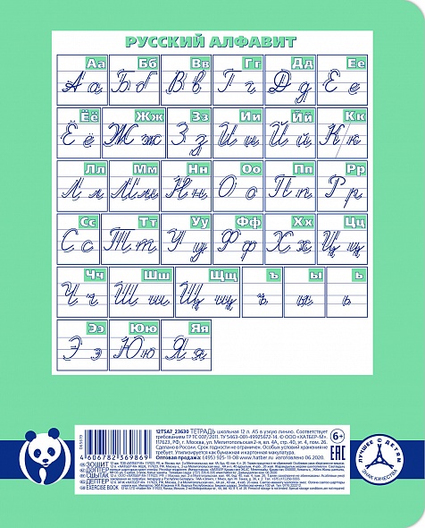 Тетрадь А5 формата 12 листов.Обложка: мелованный картон. Внутренний блок: офсет 80 гр., узкая линия, красные поля.Скрепление: скоба. Зеленые тетради классического дизайна, дополненные милым изображением панды, не оставят равнодушным ни одного школьника. Блок повышенной плотности и гладкости идеально подходит для всех видов пишущих принадлежностей, включая гелевые, капиллярные и перьевые ручки: написанное на одной стороне не просвечивает на другой. Внешний вид тетрадей надолго сохранит свою привлекательность за счет скругленных уголков. Внутренний блок с четко прорисованными полями и линовкой соответствуют высокому качеству полиграфии. Тетради упакованы в картонную транспортную коробку. На ней имеется перфорация для частичного отрыва верхней крышки, за счет которой коробка без особых усилий превращается в удобный шоу-бокс для выкладки тетрадей на полках магазинов.Тетради ТМ Hatber российского производства отпечатаны на современном высокотехнологичном оборудовании и соответствуют стандартам качества.