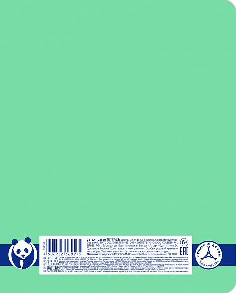 Тетрадь А5 формата 24 листа. Обложка: мелованный картон. Внутренний блок: офсет 80 гр., клетка, красные поля. Скрепление: скоба. Зеленые тетради классического дизайна, дополненные милым изображением панды, не оставят равнодушным ни одного школьника. Блок повышенной плотности и гладкости идеально подходит для всех видов пишущих принадлежностей, включая гелевые, капиллярные и перьевые ручки: написанное на одной стороне не просвечивает на другой. Внешний вид тетрадей надолго сохранит свою привлекательность за счет скругленных уголков. Внутренний блок с четко прорисованными полями и линовкой соответствуют высокому качеству полиграфии. Тетради упакованы в картонную транспортную коробку. На ней имеется перфорация для частичного отрыва верхней крышки, за счет которой коробка без особых усилий превращается в удобный шоу-бокс для выкладки тетрадей на полках магазинов. Тетради ТМ Hatber российского производства отпечатаны на современном высокотехнологичном оборудовании и соответствуют стандартам качества.