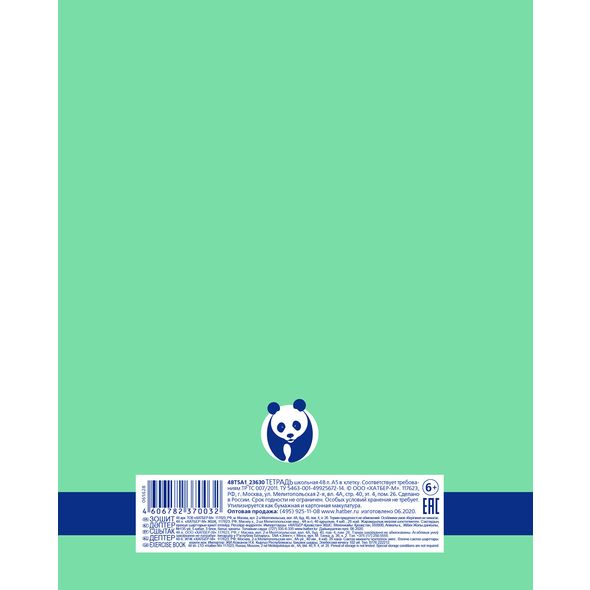 Тетрадь А5 формата 48 листа.Обложка: мелованный картон. Внутренний блок: офсет 80 гр., клетка, красные поля.Скрепление: скоба. Зеленые тетради классического дизайна, дополненные милым изображением панды, не оставят равнодушным ни одного школьника. Блок повышенной плотности и гладкости идеально подходит для всех видов пишущих принадлежностей, включая гелевые, капиллярные и перьевые ручки: написанное на одной стороне не просвечивает на другой. Внешний вид тетрадей надолго сохранит свою привлекательность за счет скругленных уголков. Внутренний блок с четко прорисованными полями и линовкой соответствуют высокому качеству полиграфии. Тетради упакованы в картонную транспортную коробку. На ней имеется перфорация для частичного отрыва верхней крышки, за счет которой коробка без особых усилий превращается в удобный шоу-бокс для выкладки тетрадей на полках магазинов.Тетради ТМ Hatber российского производства отпечатаны на современном высокотехнологичном оборудовании и соответствуют стандартам качества.