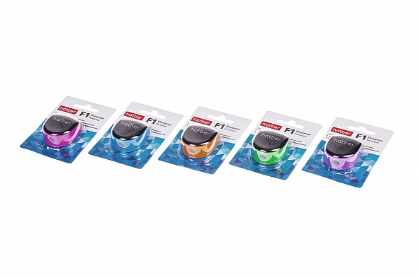Пластиковые точилки Hatber продаются в картонных упаковках, по 24 точилки в каждом блистере.