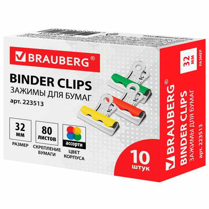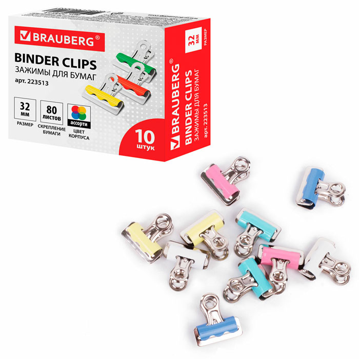 Зажимы для бумаг BRAUBERG предназначены для скрепления документов без использования степлера.