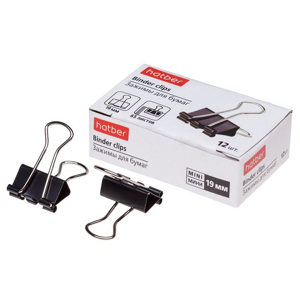 Зажимы черного цвета 19 мм предназначены для скрепления до 65 листов стандартной бумаги. Зажимы для бумаг не мнут документы, не оставляют следов, имеют удобные ушки. Изготовлены из улучшенной закаленной стали, не теряют своих пружинящих свойств даже после длительного использования. Надежно удерживают как один лист, так и стопку бумаг. Упаковка: 12 шт. в картонной коробке.