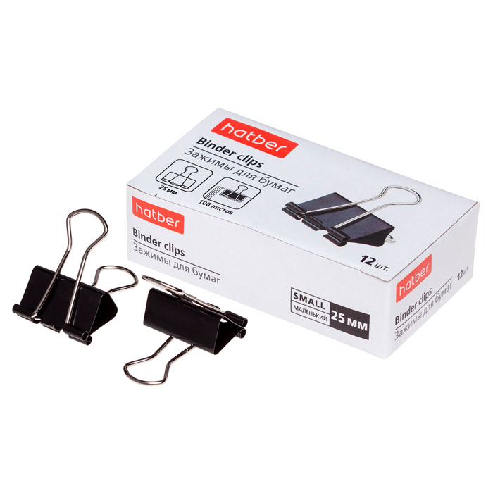 Зажимы черного цвета 25 мм предназначены для скрепления до 100 листов стандартной бумаги. Зажимы для бумаг не мнут документы, не оставляют следов, имеют удобные ушки. Изготовлены из улучшенной закаленной стали, не теряют своих пружинящих свойств даже после длительного использования. Надежно удерживают как один лист, так и стопку бумаг. Упаковка: 12 шт. в картонной коробке.